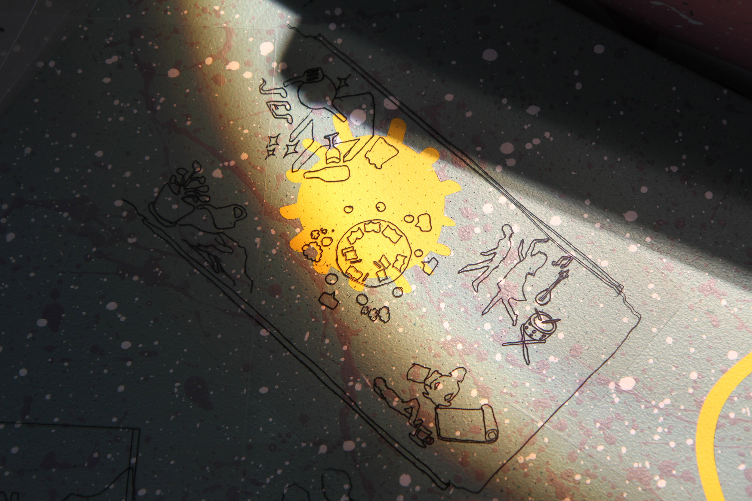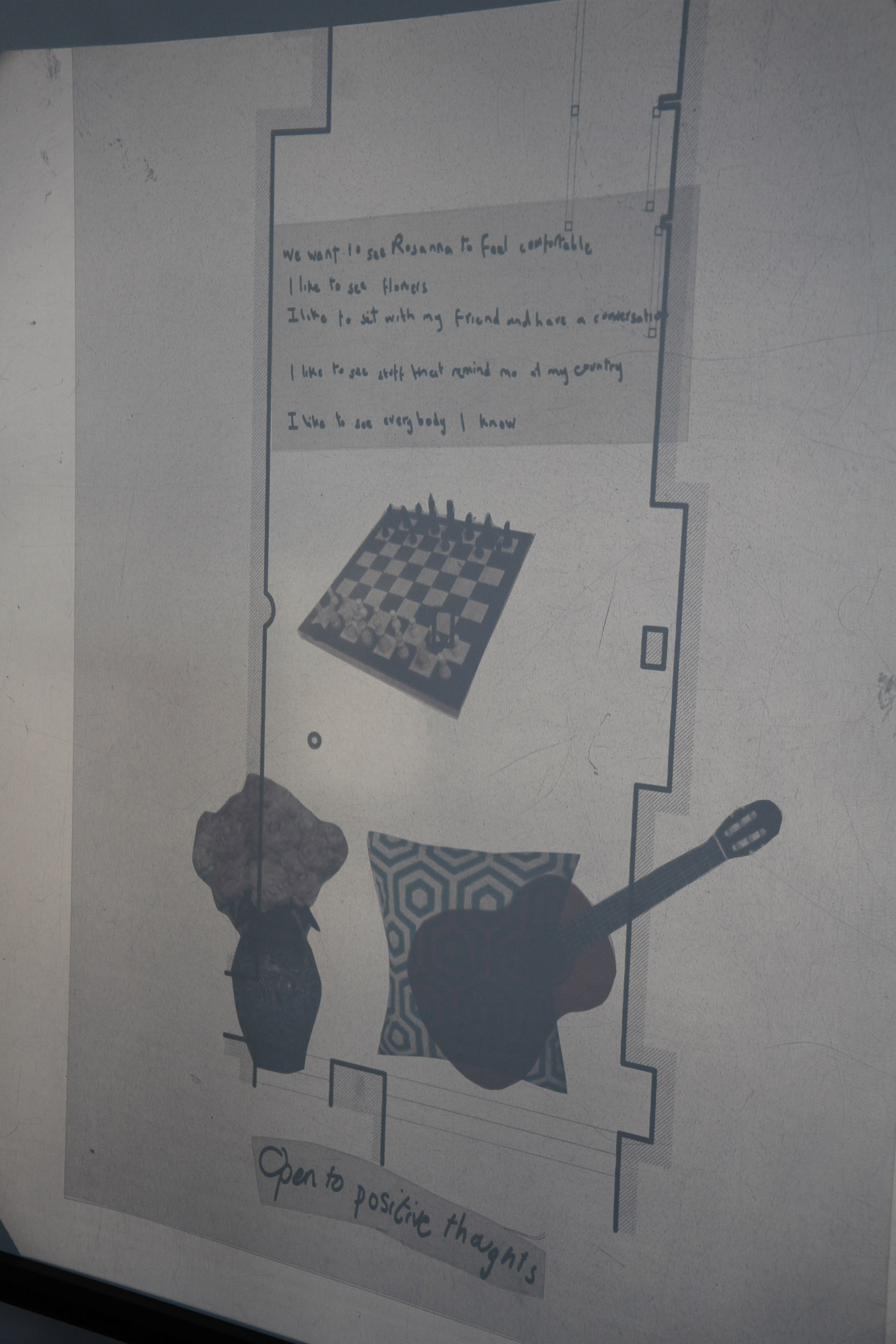 Images and material generated from the workshop were to be given to the Hastings and Rother Refugee Buddy Project including compositions of images from previous workshops, floor plans mapping the spatial dynamics of activities, and a patchwork tablecloth of ideas,  to allow them to build on this workshop for future activities.