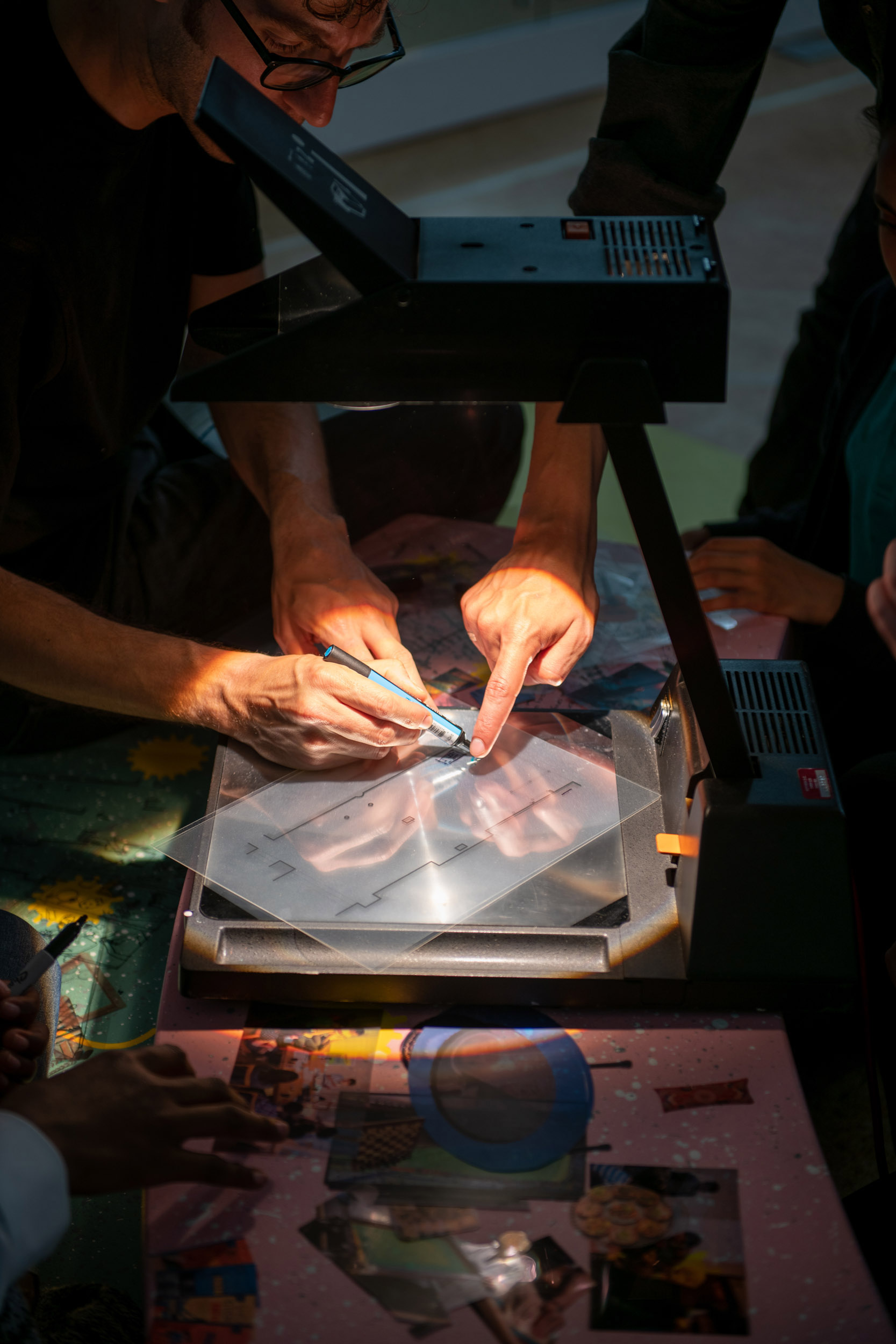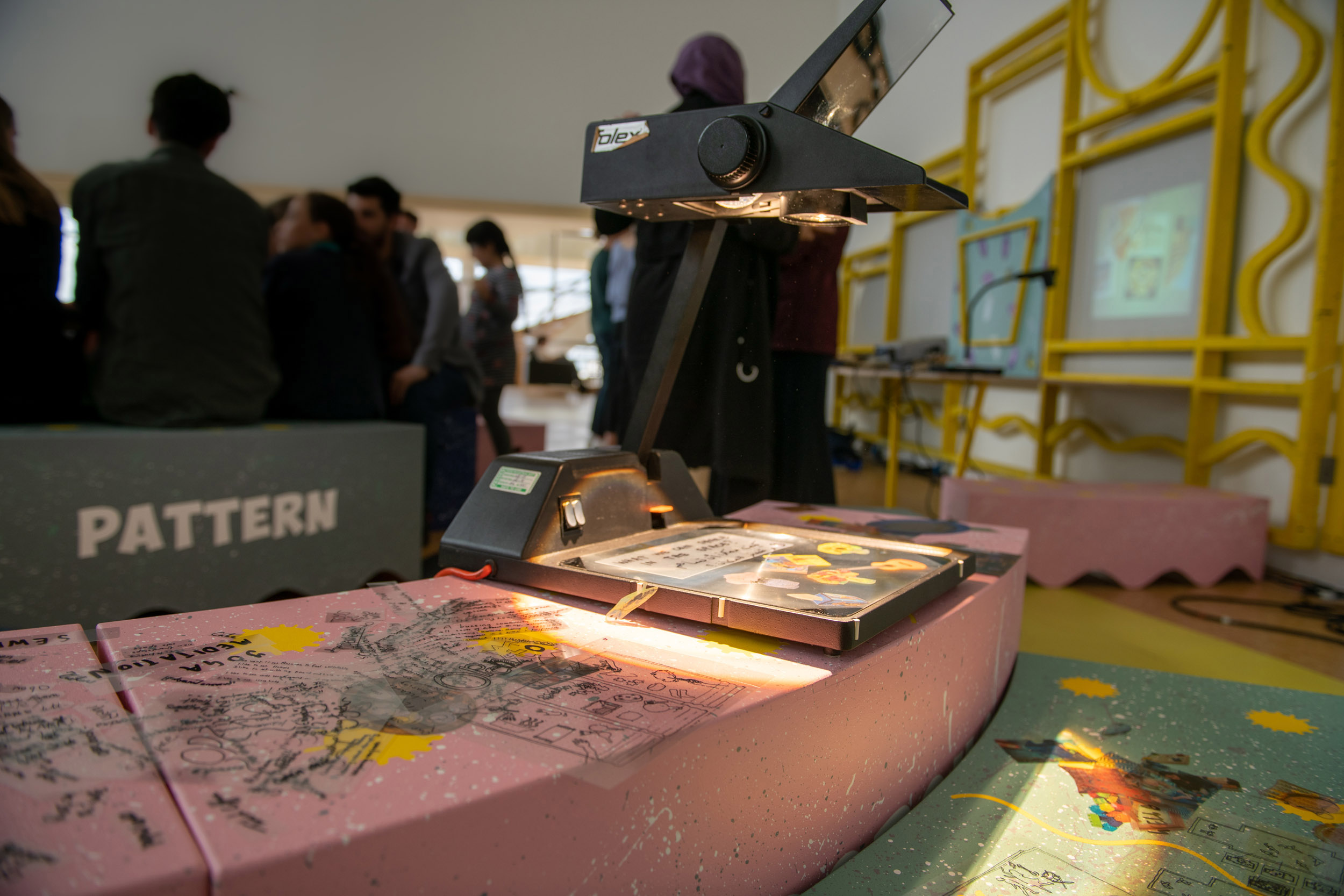 Acetate, overhead projector, fabric sheets, performative vignettes