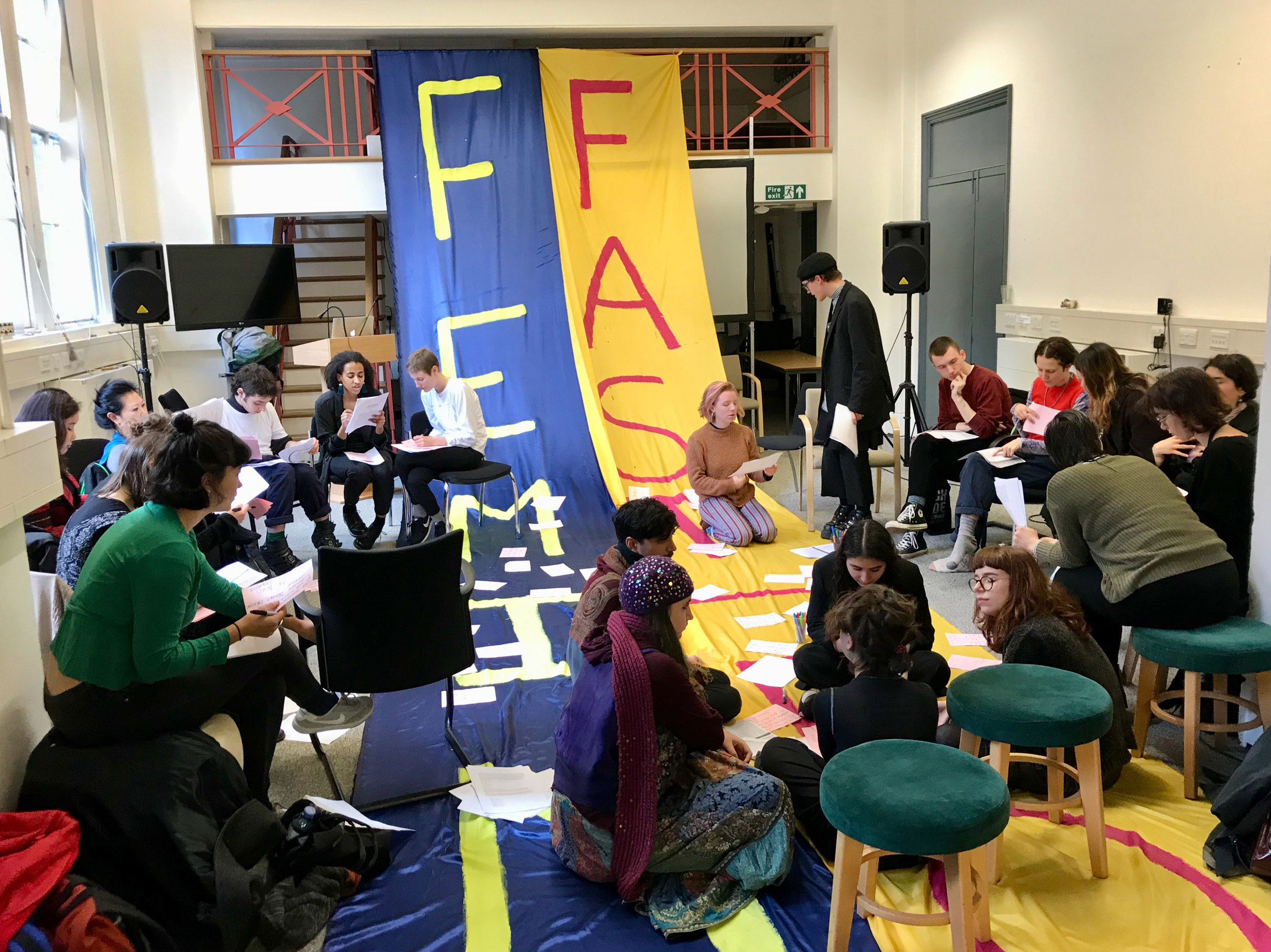 We conclude by all reading lines together in a concerto of imagination and ideals. This process of collective deliberation and writing has an important history in feminism, as Weiss reminds 'collective authorship means that feminist manifestos not only inspire political action but also are the outcome of, or reflect feminist action – a diversity of voices, informed by experience and reflection and dialogue, together confronting enormous practical and theoretical problems.' (Weiss, 2008).