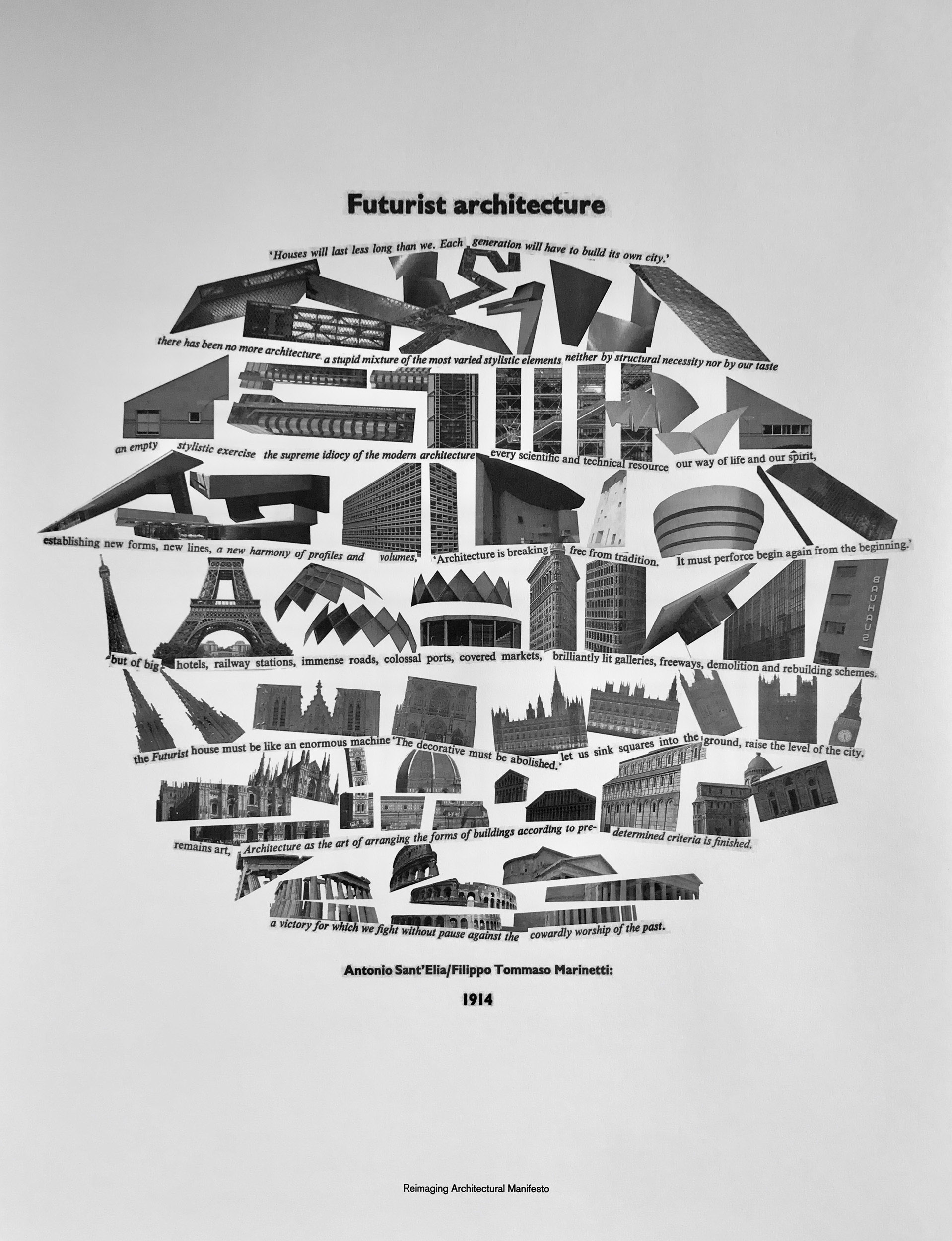 Rather than defining ourselves against other manifestos, or in reference to the canon, this approach encourages a manifesto defined with and through other writings, sayings and phrases from outside of what is conventionally regarded as architectural or urban practice. This inclusive gesture redefines both discipline and genre, reframing the manifesto from the individual to collective and opening the page as a collaborative site to an equal multiplicity of other voices.
