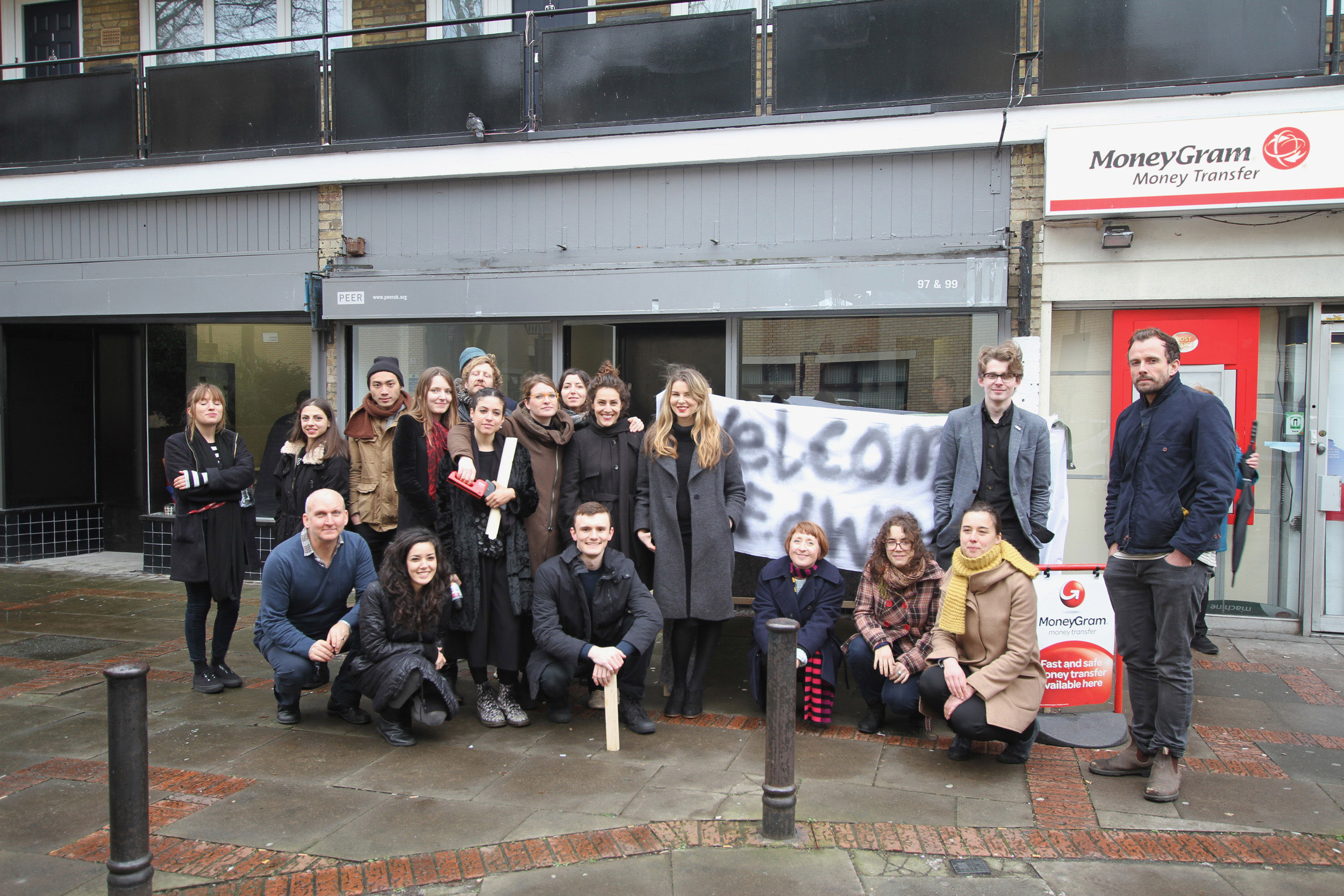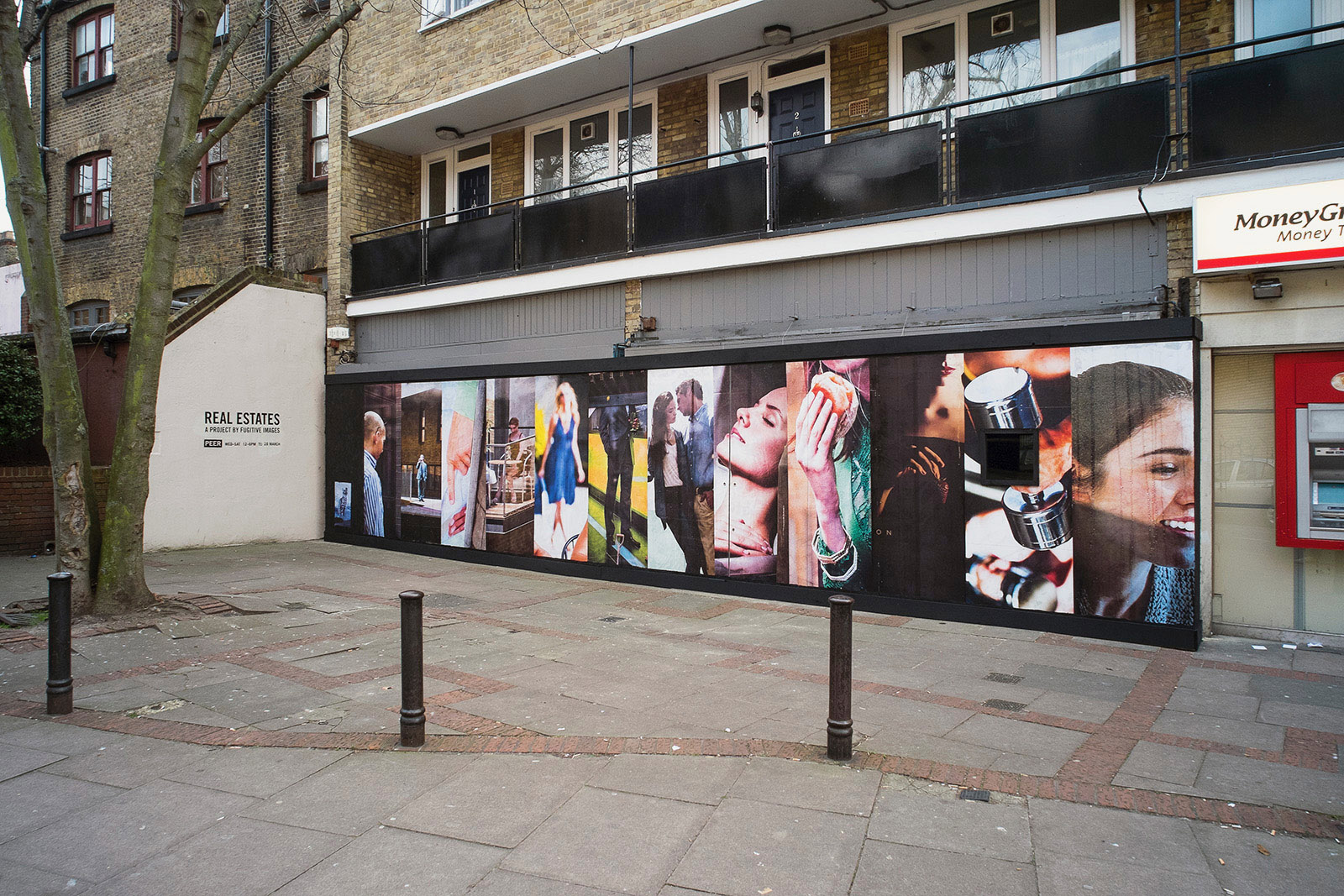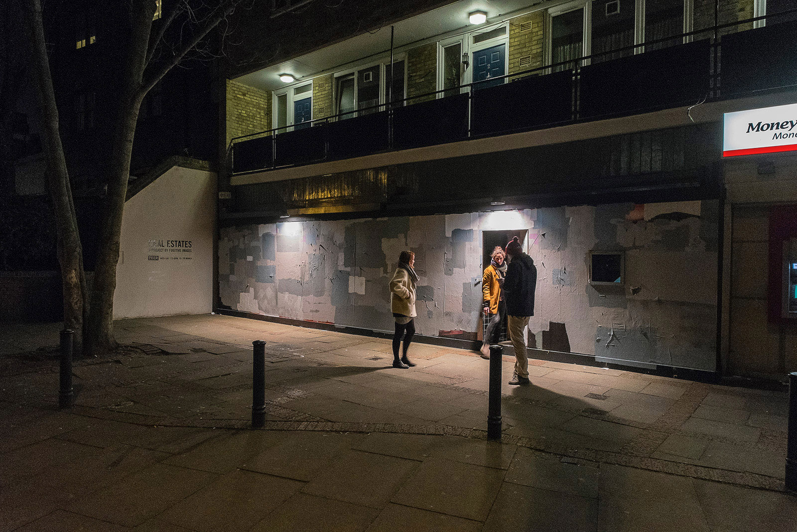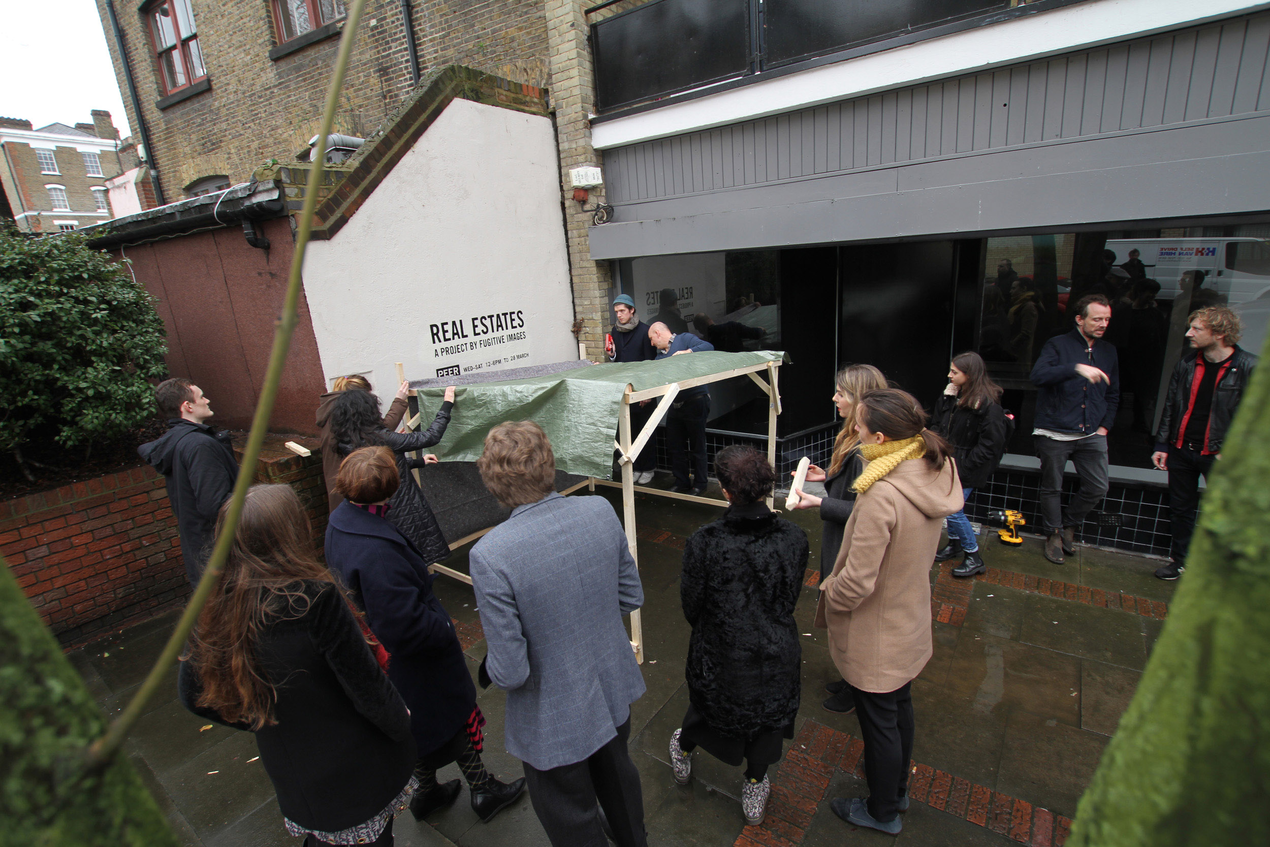 PEER Gallery comprises two connected former high-street shops on the ground floor of the Arden Estate, where Andrea Luka Zimmerman and I were invited as residency artists. Real Estates was a six week project opening PEER up as a social, discursive and imaginative space around issues of housing and spatial justice in East London through a constantly changing series of exhibitions, screenings, discussions, readings and workshops. It marked the end of a seven-year series of collaborative works with our neighbours of the Haggerston Estate. Our work came from within the community, with whom we cultivated other spaces to gather, share and campaign before the estate was demolished in 2014.