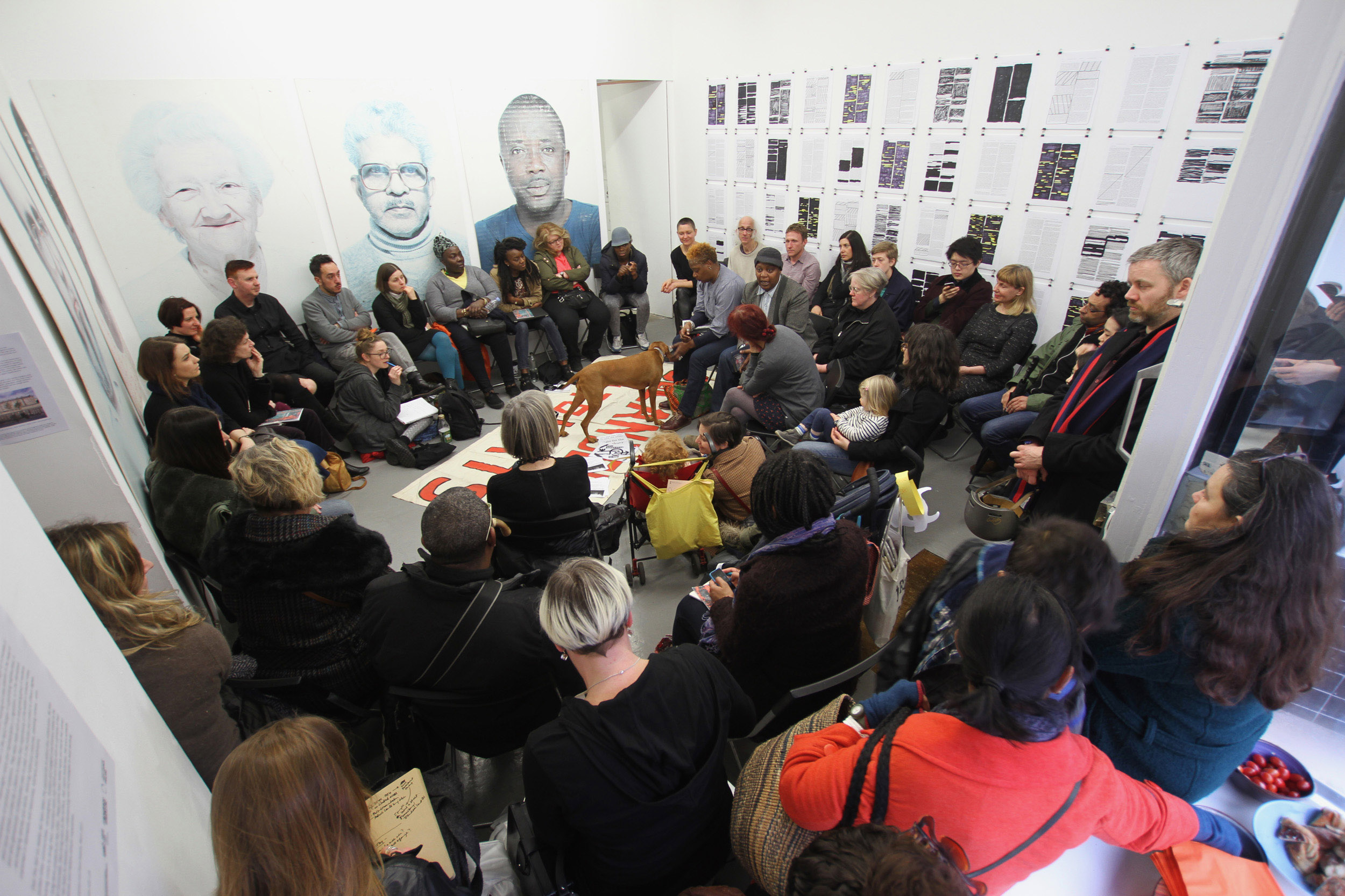 Real Estates is undoubtedly a landmark exhibition of canonical significance… By using a model that gave the gallery over to citizens, activists, artists and campaigners to arrange and use as a spatial resource, and by focusing each week on a specific and clear theme which engendered lively discussion, Real Estates succeeded in creating a democratic space in which hierarchical distinctions fell away, connections were made and conversations led to concrete and sustained action beyond the gallery, Morgan Quaintance, Art Monthly, March 2016.