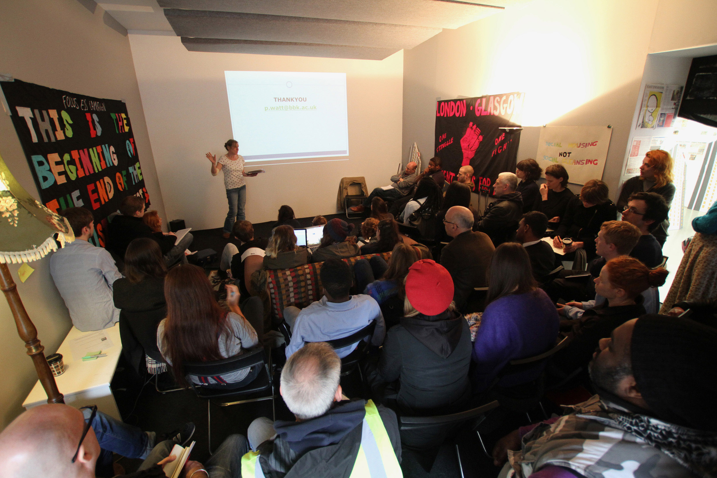 Contributions from: Owen Jones, Hackney Digs, Pau Faus, Pau Faus, Silvia Gonzáles-Laá, Xavi Andreu, John Smith, Jane Rendell, Beverley Robinson, Aysen Dennis, Richard Baxter, Caterina Sartori, Brandon LaBelle, John Rogers, Jeremy Till, Barry Watts, Ken Loach, Kerry Simmons, Dave Sinclair, Lesley Woodburn, Sarah Kwei, Dave Smith, Paul Heron, Felicity Downing, Adrian Jackson, Marcia Farquhar, David Madden, Lisa McKenzie, Tom Gann, Alberto Duman, Louise Sayarer, Eva Vikstrom, Tom Cordell, Kate Macintosh, Paul Watt, Melissa Butcher, Jon Fitzmaurice, Fuel Poverty Action, Tawanda Nyabango, Jasmin Parsons, Geraldine Dening, Simon Elmer, Alison Balance, Patrick Langley, Morgan Quaintance, Rab Harling, Sue Lukes, Advisory Service for Squatters, Green and Black Cross, Legal Defence and Monitoring Group, Sweets Way Estate, HASL, Unite Communities, Our West Hendon, Guinness, Skills Network, Radial Housing Network, Dorothy Allan-Pickard, Rastko Novakovic, Steven Ball, Kate Belgrave, Jason Parkinson, Julian Samboma, LCAP, Sibyl Trigg, John Murray, Elisabeth Blanchet, Jane Hearn, Andre Anderson, Raze, Predz UK, Kayden Bell, Jade Snyper, Nathaniel Telemaque, Municipal Dreams, Guillaume Meigneux, Stephen Watts, Lorna Forrester, Elam Forrester, Alison Marchant, Gillian McIver, Emer Mary Morris, Cathy Ward, Nela Milic.
