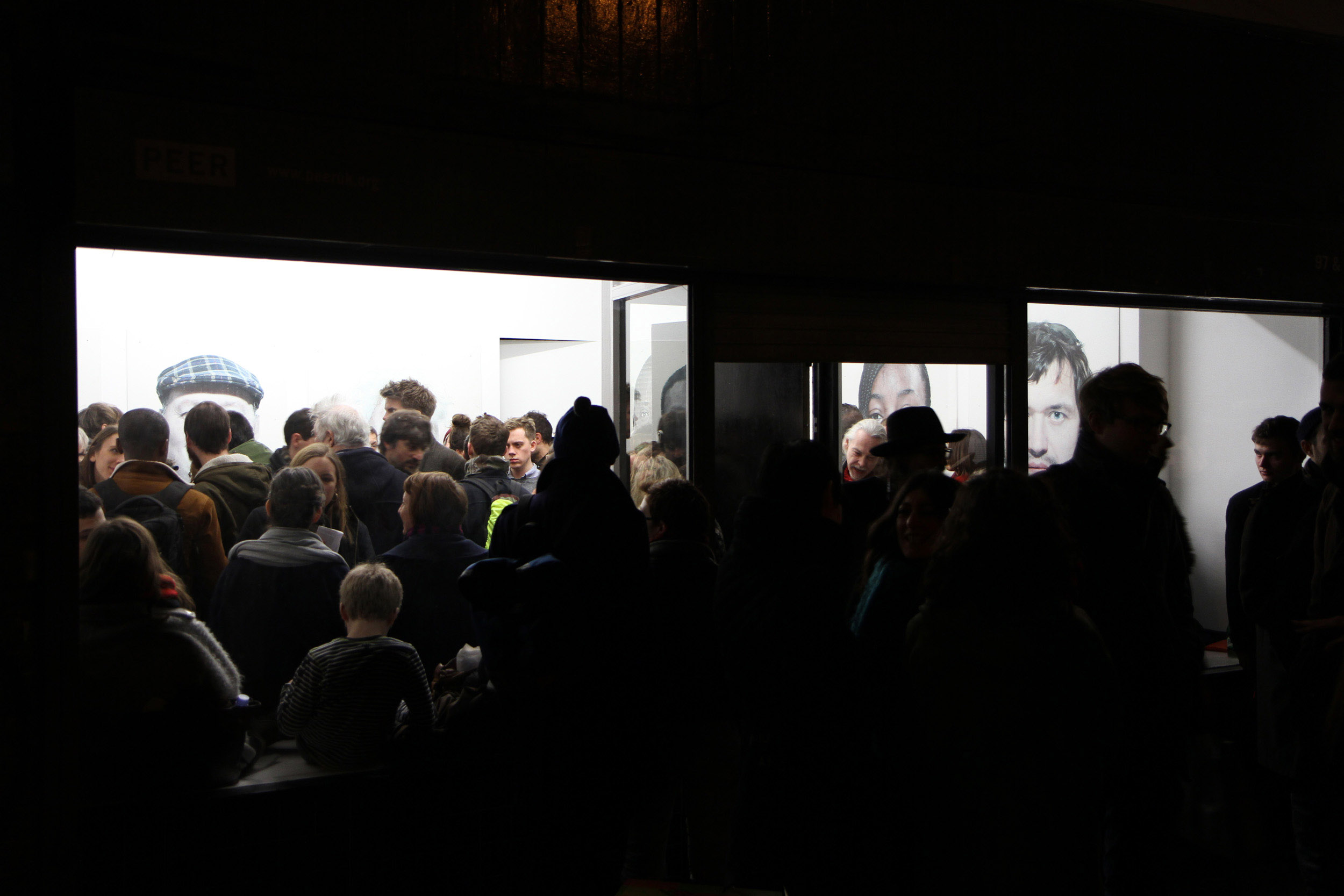 The east gallery was a rolling exhibition space which changed every week, providing a short-term residency for different campaign groups with different material displayed. Once the events had been scheduled at PEER, we handed the display and curation of the gallery space, and the direction of discussions within it, over to each of the campaign groups, allowing them to share their work and their knowledge with other thinkers and practitioners on their own terms. For example, the Focus E15 Campaign, denied access to a permanent home of their own, transformed the gallery space into a living room with armchairs, bookcases and table lamps, softening the edges of the space but hardening the politics with protest banners hung on walls and discussions on squatting and eviction within the context of a dislocated home.