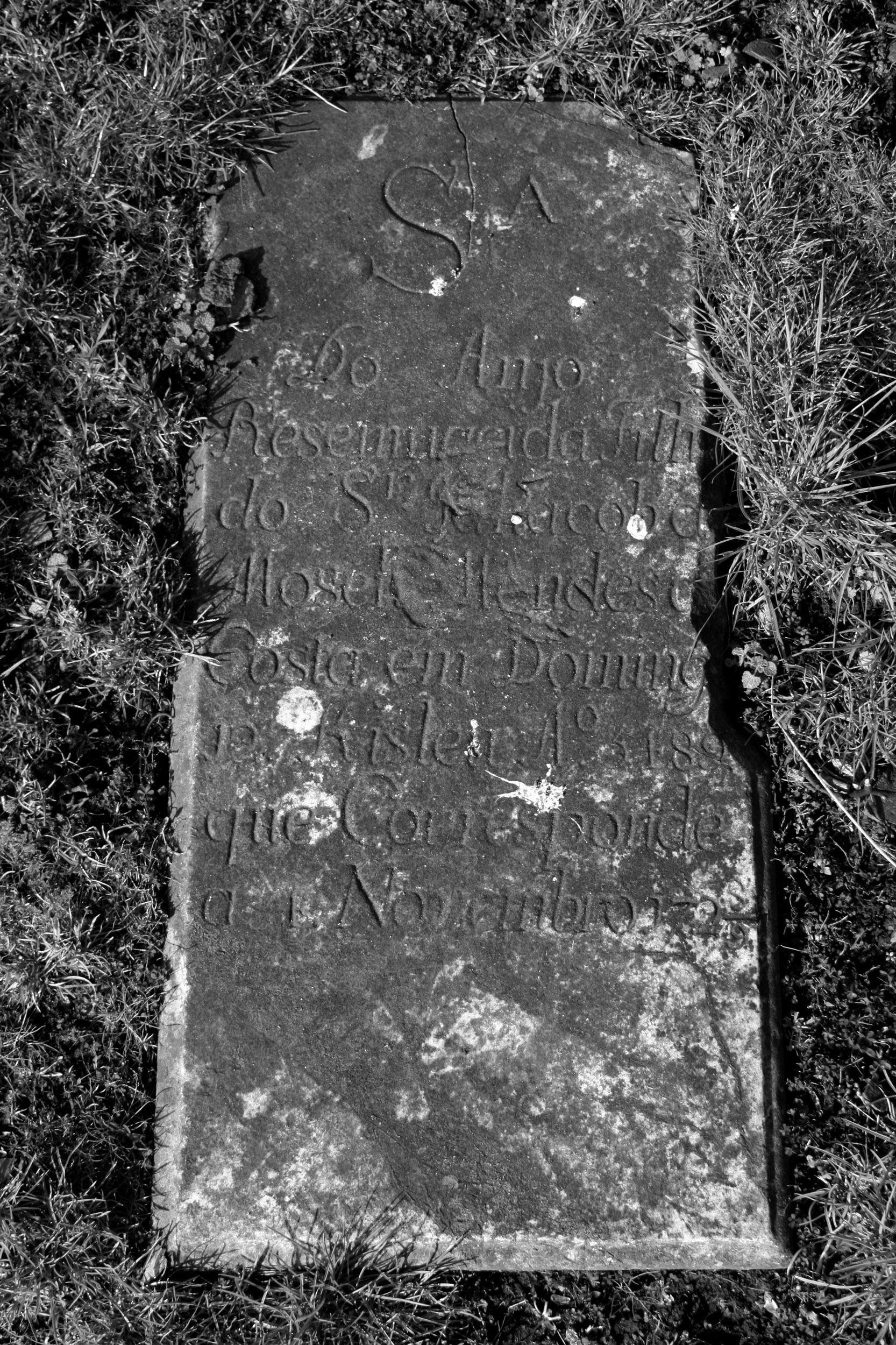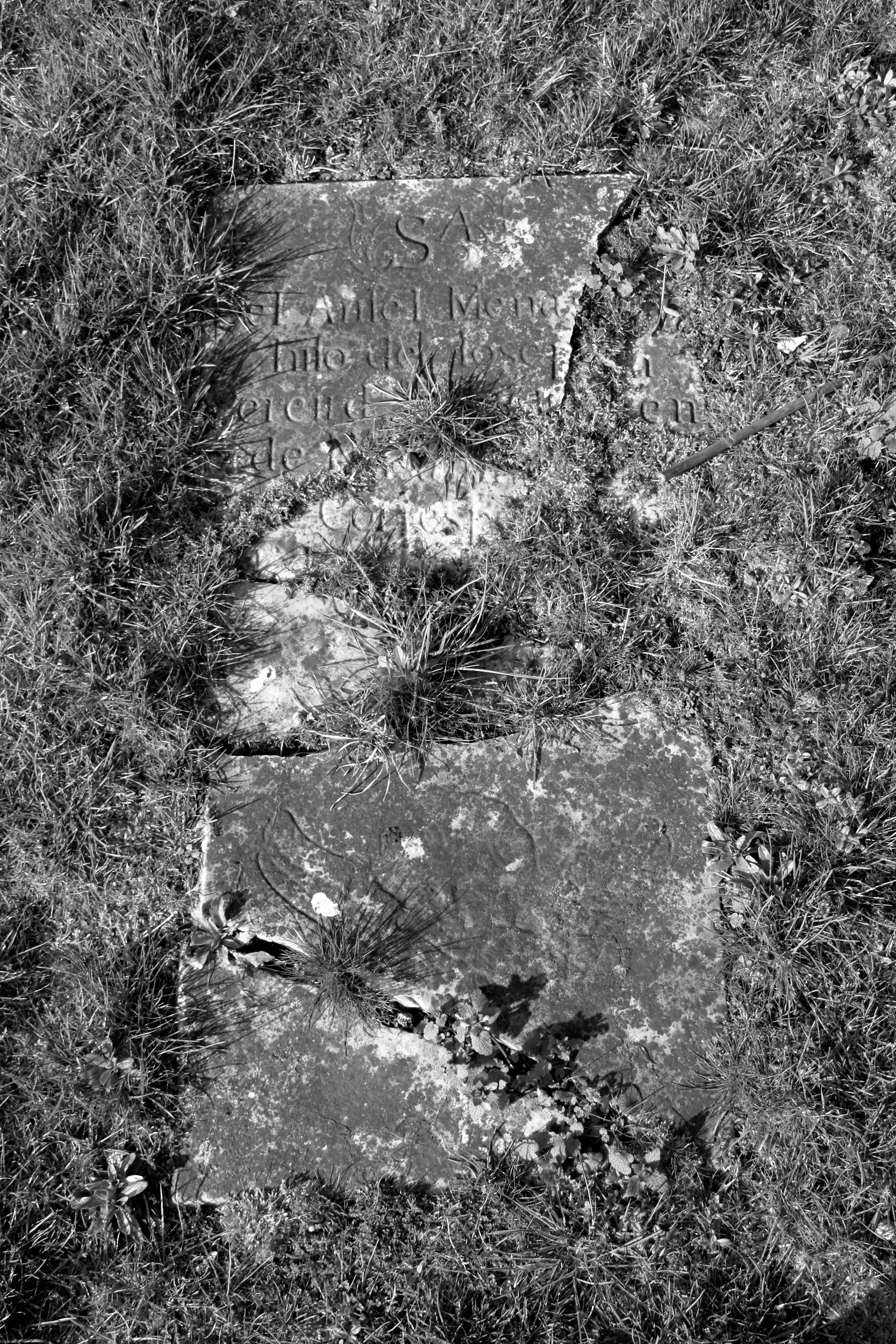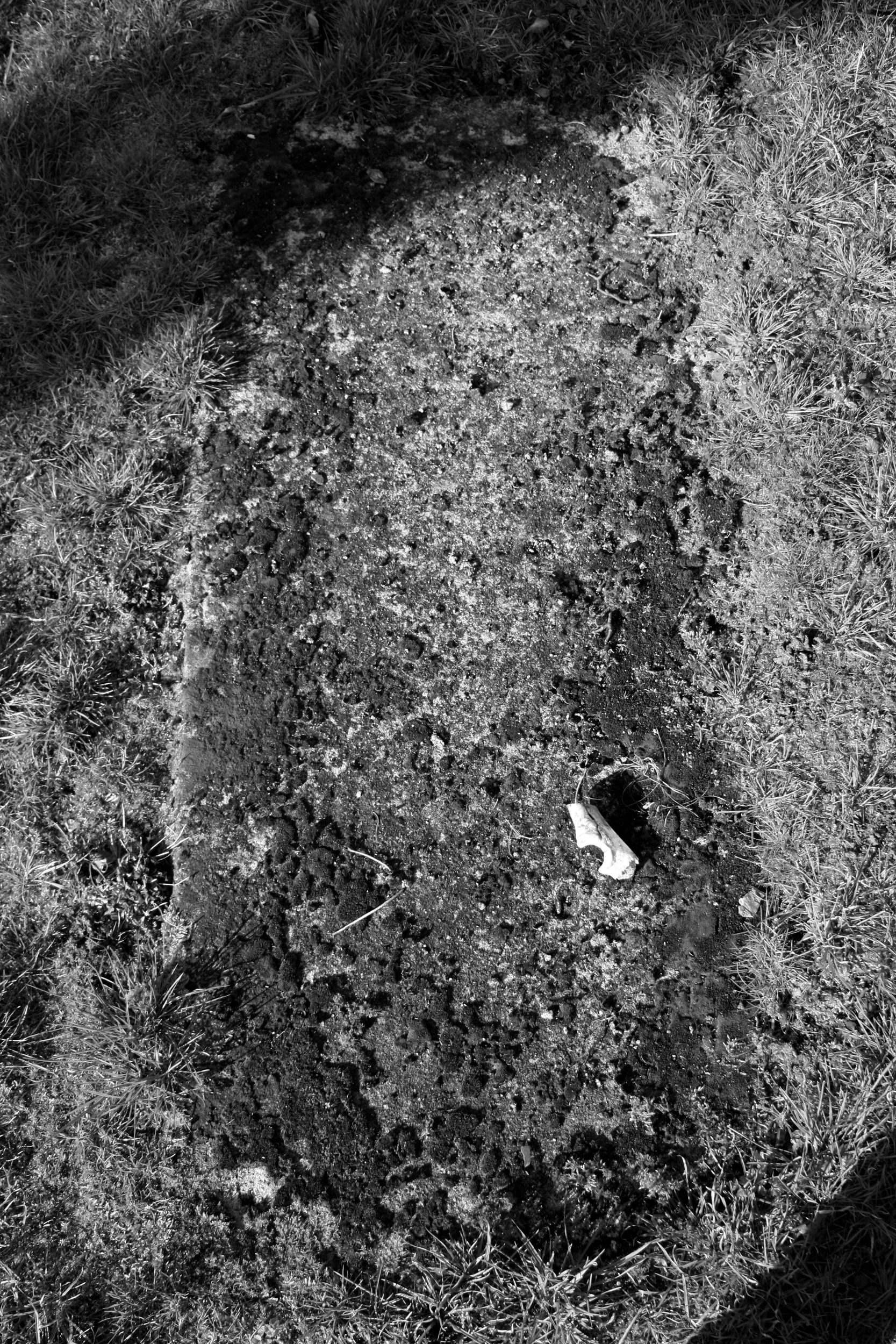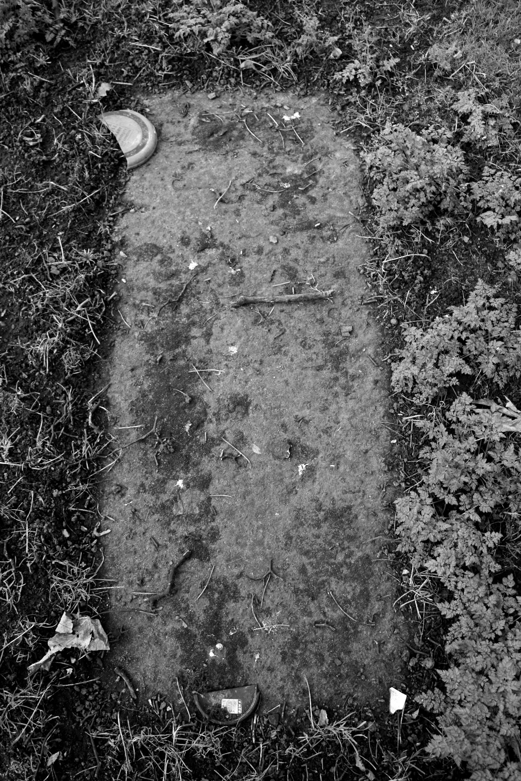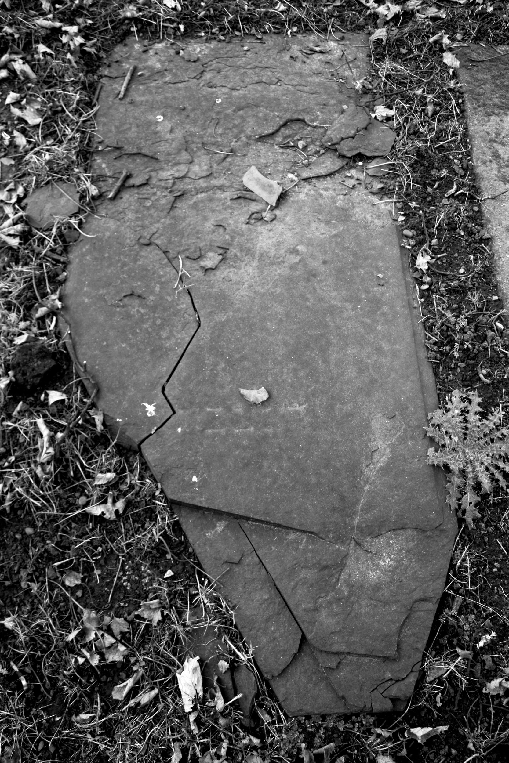 Slab is a collection of concrete poems and photographs based on the Velho Sephardic Cemetery in which tombstones rest flat to the earth, wreathed in moss, shattered and absorbed into the ground.