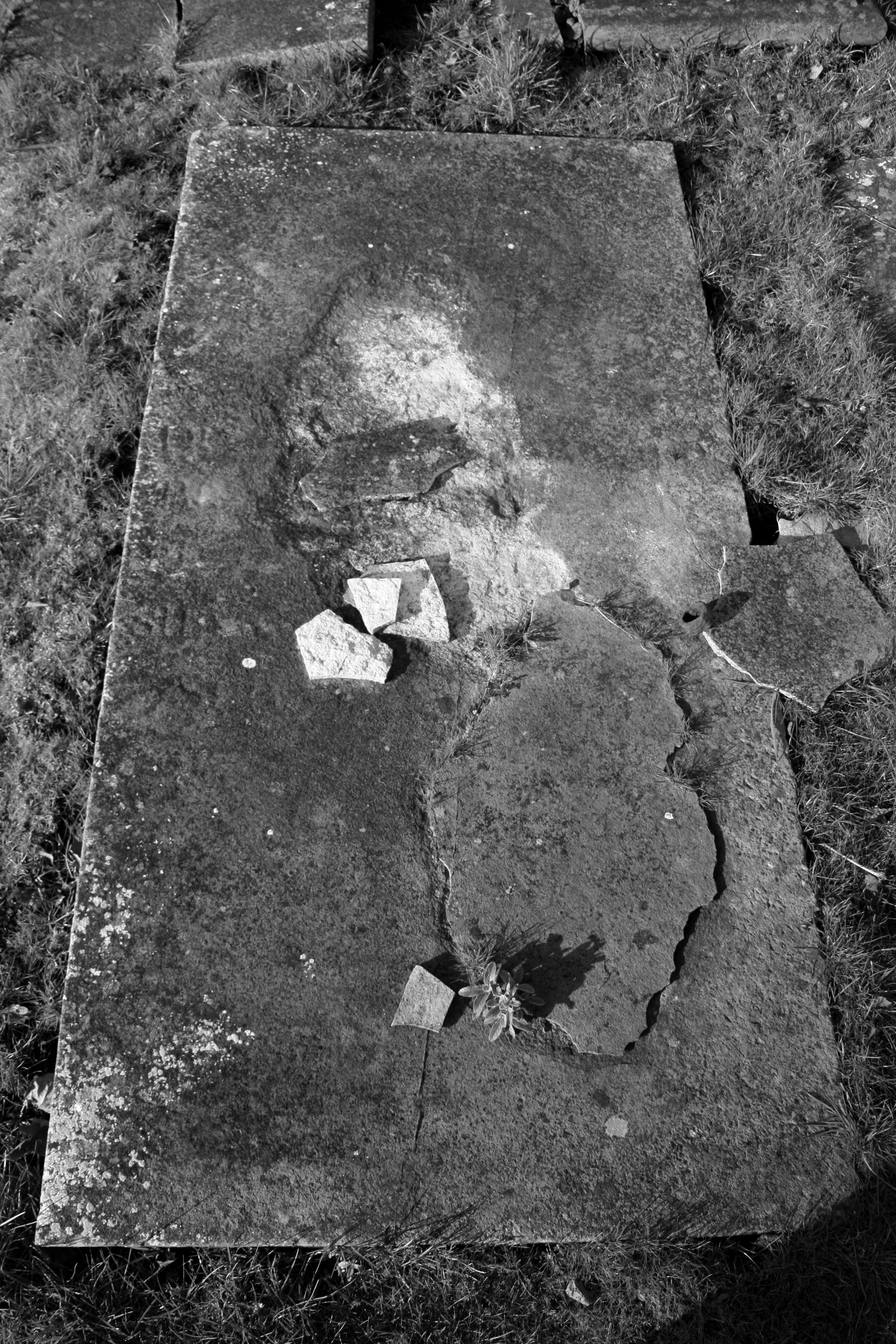 In the cemetery, the small and great are buried alike, lowered into the grave with feet facing east ‘so that they may rise and walk to the Holy Land’. Some images carved into stone still sing; roses, scores of skull and crossbones, small stones with winged cherubs for those who died in infancy, and the occasional arm and hand reaching from the clouds to fell a tree, motif of a life cut short.